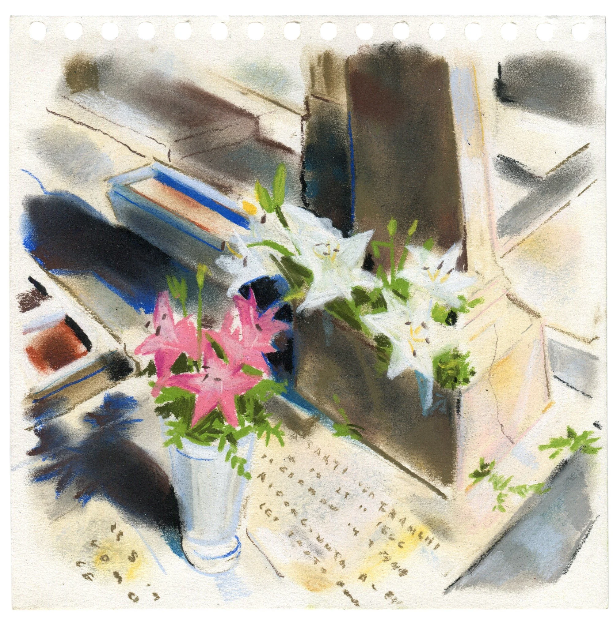 Logan T. Sibrel, “I fiori di Porte Sante”, Pastel on paper,8.25 x 8.25 inches, 2025