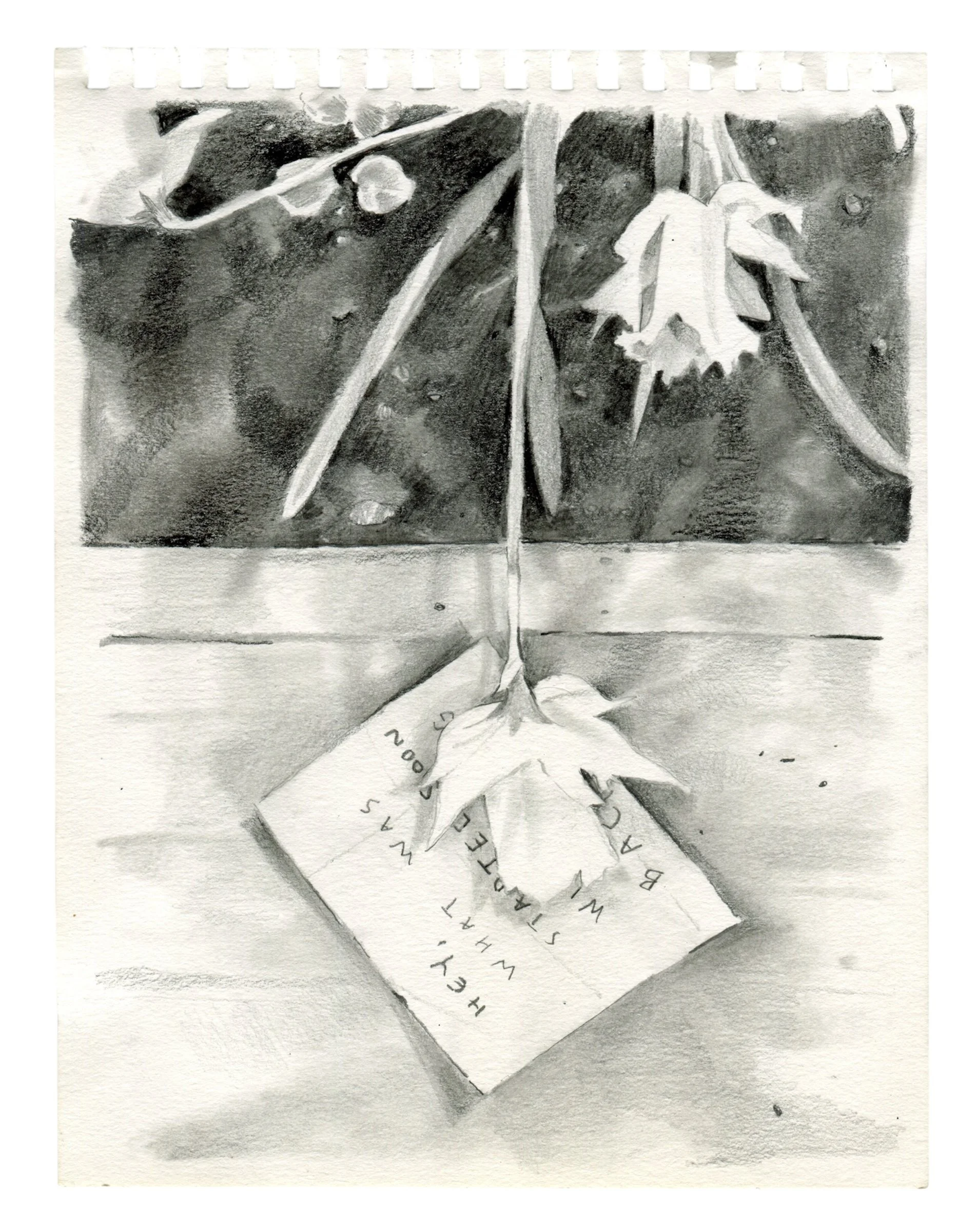 Logan T. Sibrel, “What Was Started…”, pencil on paper, 8.25 x 6.25 inches, 2023