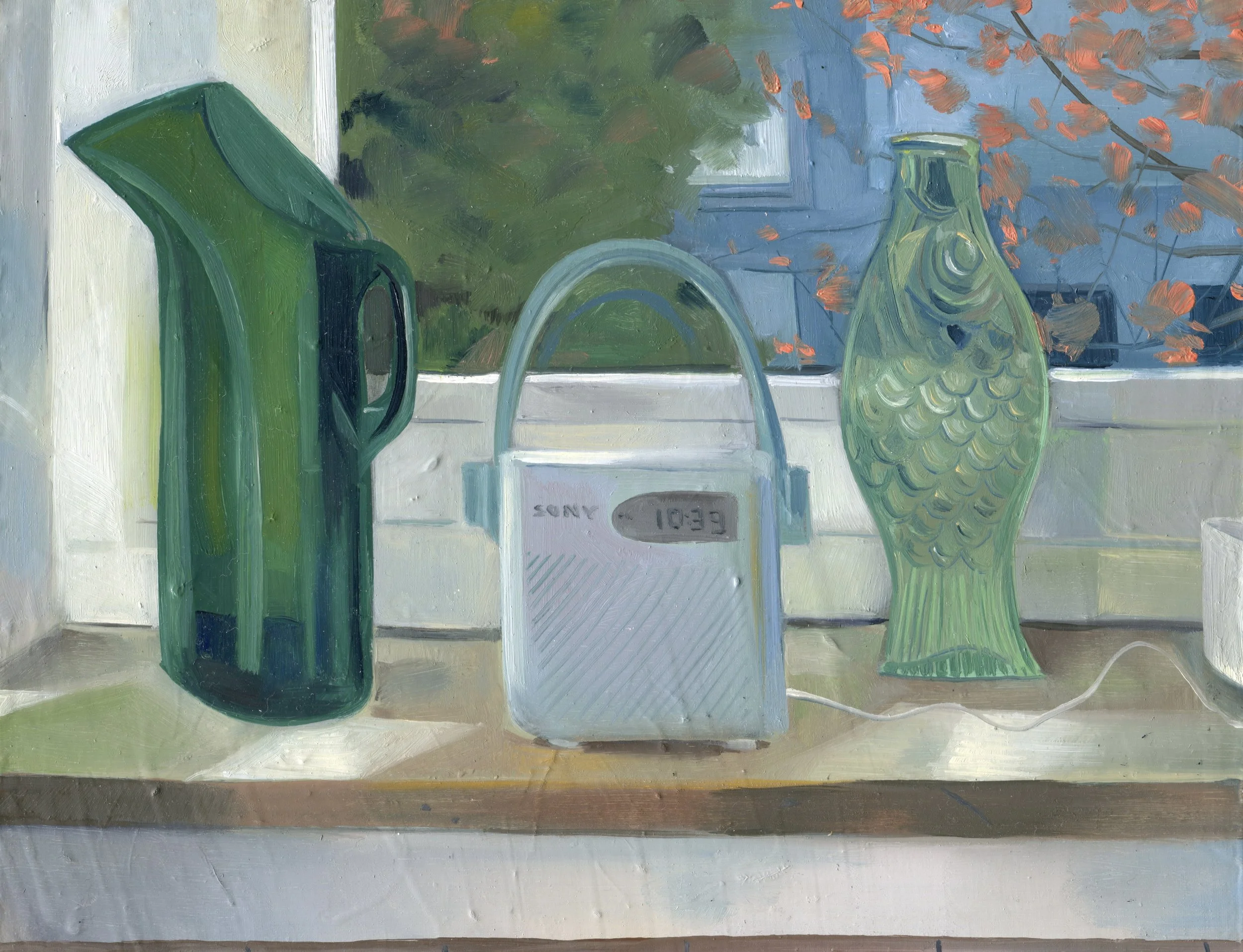 Logan T. Sibrel, “Nils’s Windowsill (Koln)", Oil on muslin panel, 7 x 9 inches, 2025