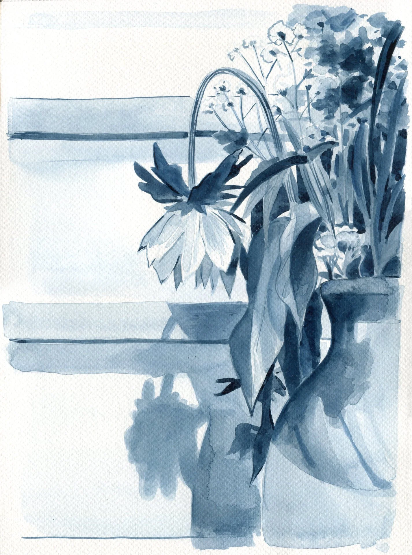Logan T. Sibrel, “Evening Still-Life (Sketch)”, Gouache on paper, 15.5 x 11 inches, 2025