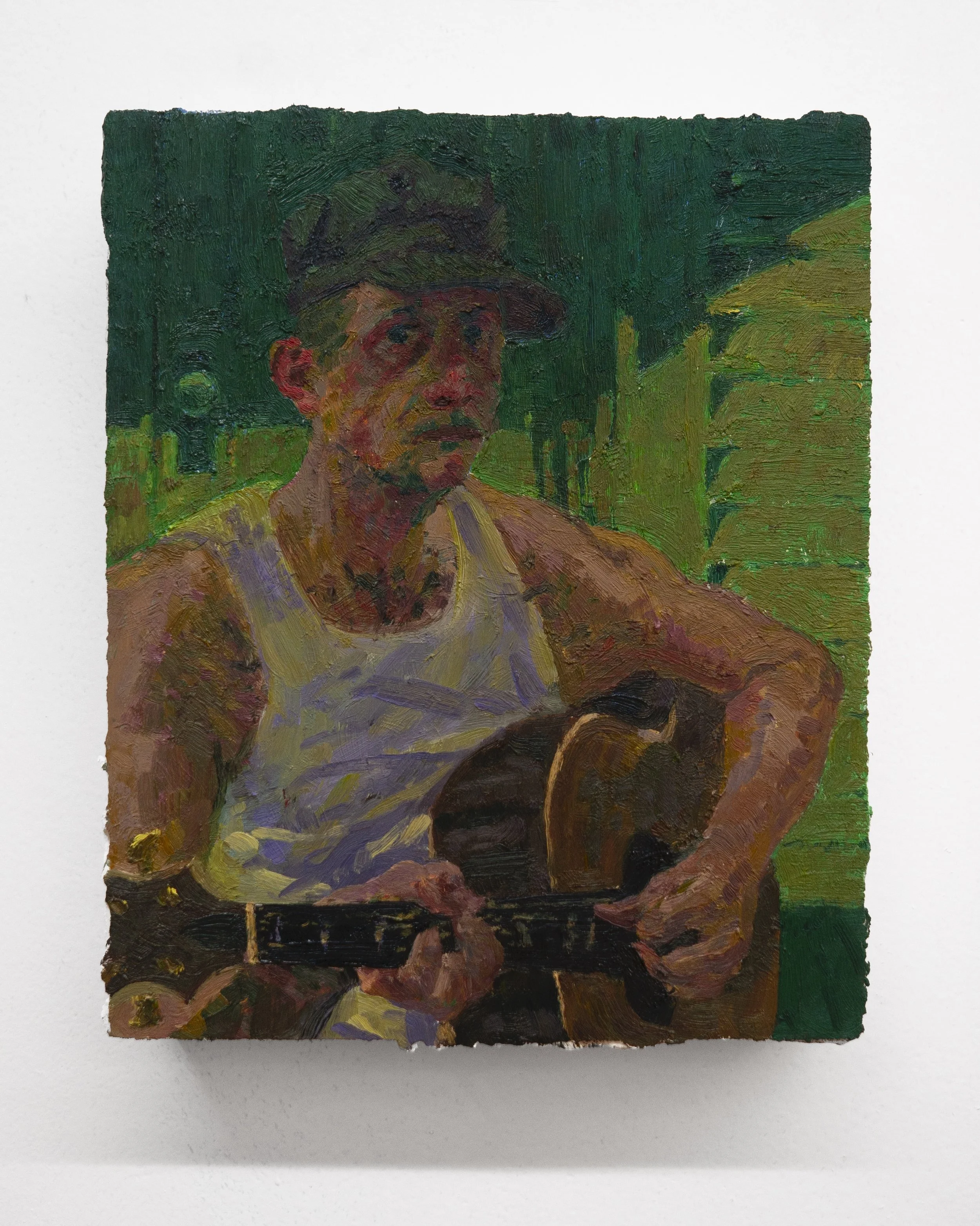 Samuel Guy, "Hobo’s Lullaby", Oil on panel, 10 ¾ x 8 ¾ x 1 ¾ inches, 2025