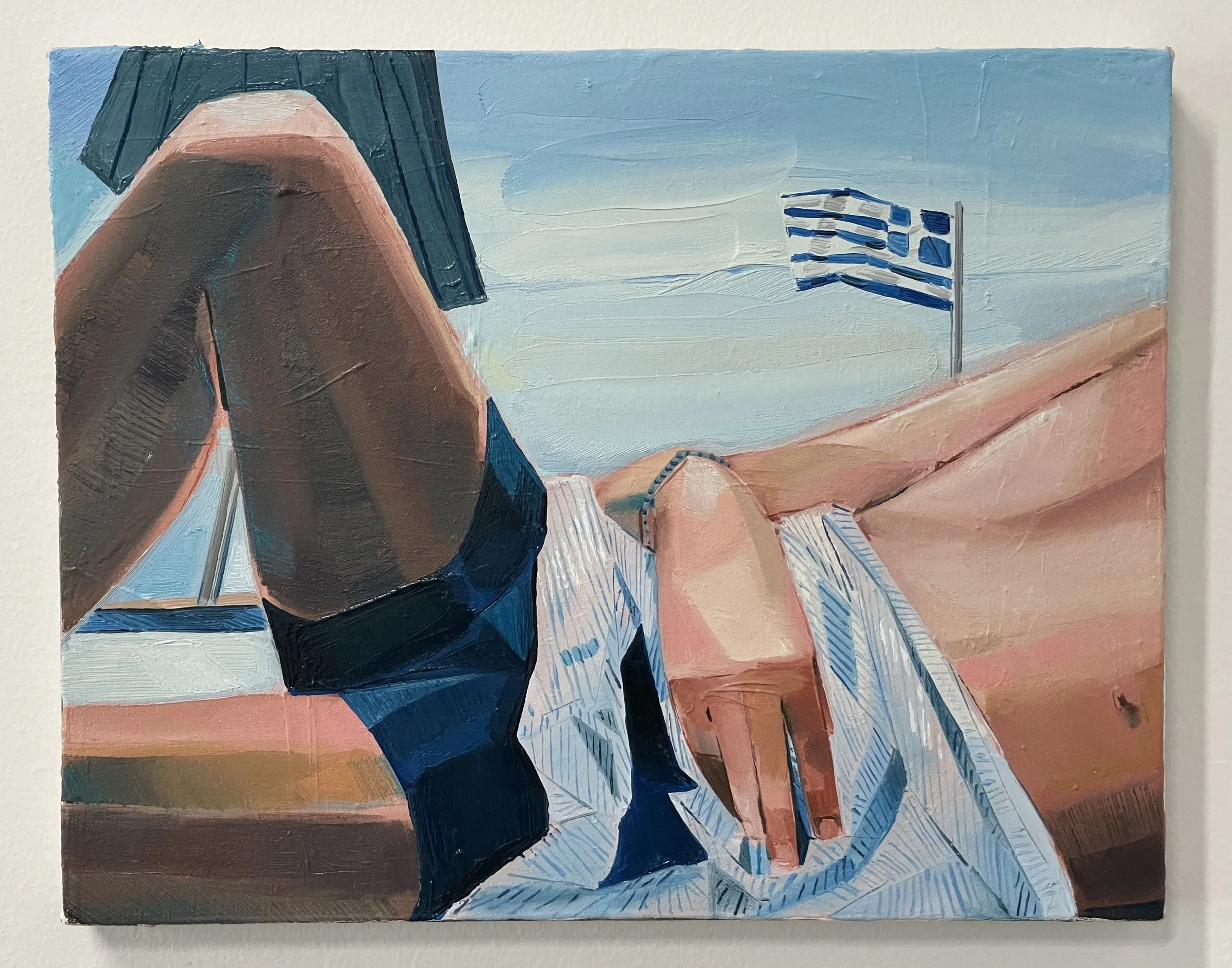 Dylan Hurwitz , "dune legs (Herring Cove)", oil on canvas, 28 x 22 inches, 2021