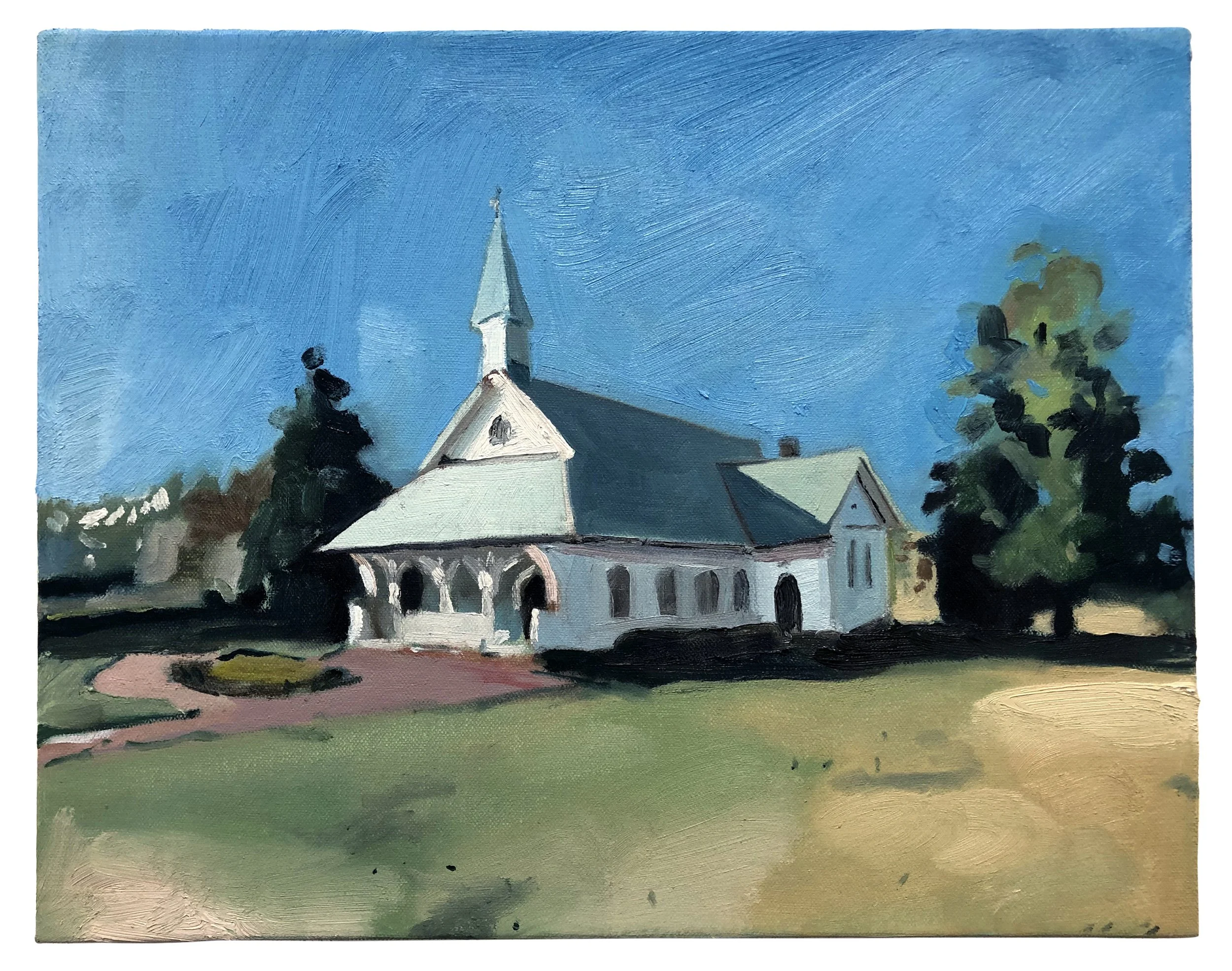 Hank Ehrenfried, "December 26, 2019 12:17pm; formerly the confederate memorial chapel", 11 x 14 inches, oil on canvas, 2020